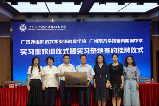 9月5日下午,线路检测中心与广州南方学院番禺附属中学(以下简称“番附”)共建“大学生校外实践教育基地”签约授牌仪式在番附举行。学院院长董金伟、副院长吴岩、教育系主任陈媛媛、办公室主任陈英、组织员刘臻嵘老师和首批实习学生,以及番附常务副校长古敏锋、副校长郁婷婷、校长助理管春霞、各部门主任及部分老师出席了活动。