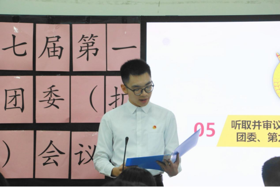 学院学生会执行主席何梓锌汇报团委学生会过去一年的工作,就思想引领、社会实践、宣传沟通、文体活动、学术竞赛、以及权益服务六个方面,分享英教团学一年来的主要工作与成就,同时对下一届团委学生会提出期望:一是以服务广大同学为宗旨,保障同学的切身利益;二是切实抓好自身组织建设,积极发挥学生能动作用;三是锐意进取,大胆创新,奋斗铸就事业,创新开辟未来。