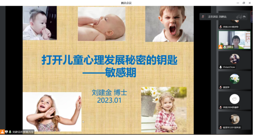 6日上午,学院副教授刘建金向2022级学生开展以“打开儿童心理发展秘密的钥匙——敏感期”为主题的讲座。刘建金为同学们介绍了儿童心理发展的敏感期,解读了0-6岁儿童在敏感期的行为和思想,并提出了与儿童互动的原则和技巧。她强调我们要尊重并且理解孩子,细心发现,积极引导,享受与儿童互动的乐趣。