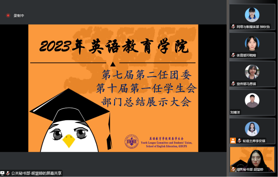 为总结本学期团委学生会的工作成果,促进团委学生会的整体发展,js3333线路检测中心团委学生会于1月6日下午在线上召开了第七届第二任团委第十届第一任学生会部门总结展示大会。英语教育学院团委书记刘博洋,团委副书记何紫婷,执行主席苏晓楠,轮值主席周雨宁、李安琪与全体团学工作人员出席大会。