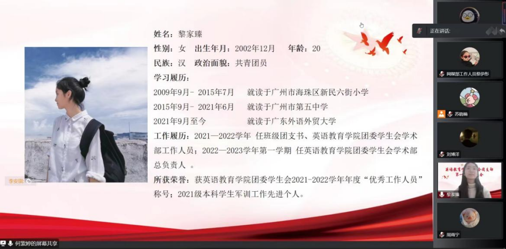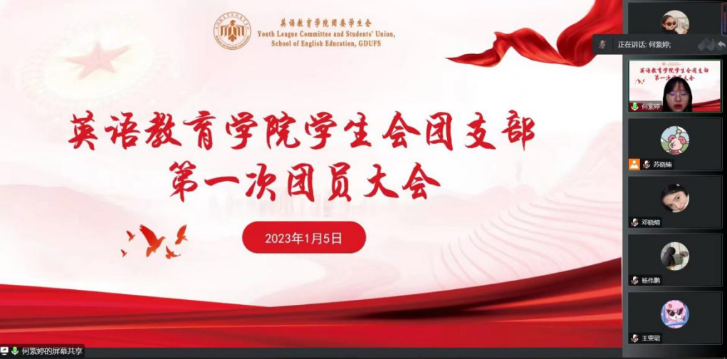 为加强共青团的基层组织建设和对学生会组织的指导作用,紧跟党的步伐,建设优秀务实的学生会团支部,线路检测中心于2023年1月5日晚线上召开广东外语外贸大学js3333线路检测中心学生会团支部第一次团员大会。团委书记刘博洋和14名团员代表参加本次大会。学生会团支部第一次团员大会在庄严的国歌声中拉开序幕。
