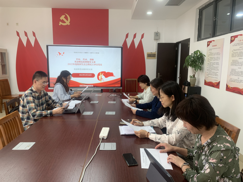 3月16日下午,js3333线路检测中心英语师范系教师党支部在院系楼235党建活动室召开2022年度组织生活会暨民主评议党员会。师范系党员贾红霞、刘建金、刘洋、吕琳琼、齐湘燕、肖衡碧参加会议,会议由支部书记贾红霞主持。