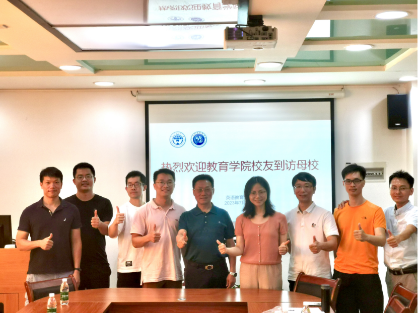三位在基础教育阵线工作的校友何洁铵(广州二中英语教师)、陈若浩(美国哥伦比亚大学博士后)以及柯海蛟(小学英语教师,澳门大学教育学博士在读)深感在教育学院打下的扎实英语基础以及教学技能的重要性,讲述了十多年的学习与工作体会,不断学以致用,并且不断深造,多岗位进行历练,让科研与教学实践结合,教学相长。毕业后选择从事贸易的李应洪和黄喜洪、从事金融行业的车再杰逐一发言,表示在跨专业就业上自身良好的英语基础为求职以及日后职场的发展带来先机。