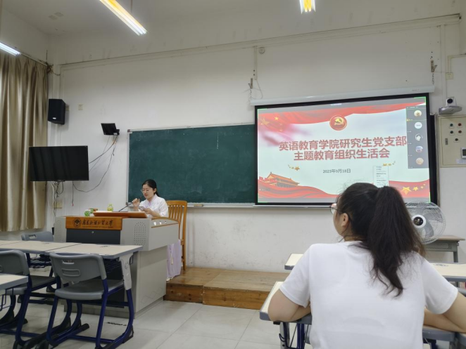 吴世傲首先对2023级新生党员加入研究生党支部表示热烈欢迎,并表示支部高度重视本次组织生活会的筹备工作。为了让研究生深入了解广东省情,深刻领悟广东省在中国式现代化建设的大局中的重要地位,支部决定开展以“习近平总书记在广东考察重要讲话精神”为学习主题。随后党员同学结合自身实际,探讨了如何在习近平总书记在广东考察的重要讲话精神的指引下,走好自己的研究生学习之路。党员同学纷纷表示,要立足于粤港澳大湾区在全国新发展格局中的战略地位,在校期间努力学习英语教育专业知识,提升“为党育人、为国育才”的专业能力。