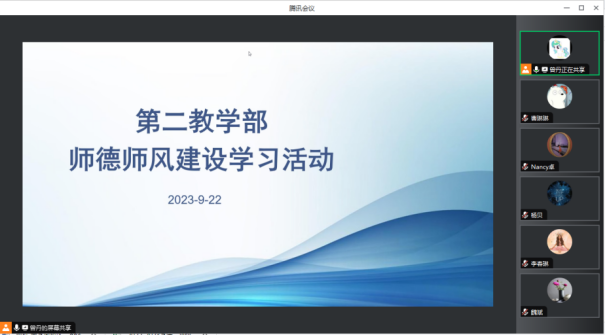 9月21日下午,js3333线路检测中心第二教学部举行师德师风建设学习活动,会议由系部主任曾丹主持,全体教师线上参会。