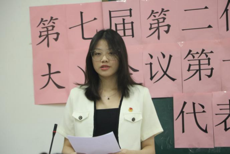 团委副书记何紫婷宣读《广东外语外贸大学js3333线路检测中心第七届第三任团委委员产生选举办法(草案)》及《广东外语外贸大学js3333线路检测中心第十一次学生代表大会选举办法(草案)》,经全体代表审议表决正式通过,监票人和计票人当众检查投票箱发放选票。大会采用不记名投票方式,实行公平公正公开的监票和计票制度。