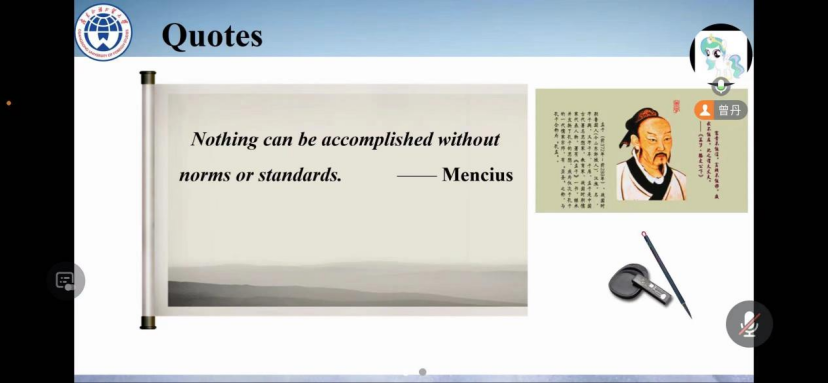 曾丹老师目前担任学院党委委员、第二教学部系部主任兼党支部书记,教学科研成果丰硕,曾荣获“南粤优秀教师”、广东外语外贸大学第三届“师德标兵”、“青年教学十佳”、“教学优秀翼群奖”等荣誉,是多项课程思政示范项目和“三进”专项项目的主持者。课后,曾丹老师与线上线下观摩的教师进行深度教研探讨,王婓、张学进、黄蔷、李刚、韩艳梅等多位老师针对课堂教学提供了宝贵的意见和建议。