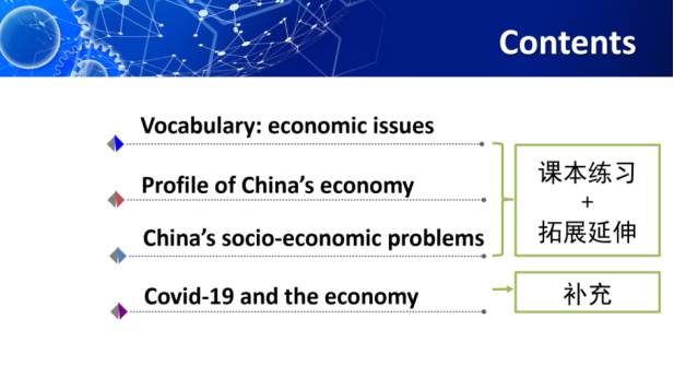 李老师的ESP教学里不仅有扎实的语言技能的训练,还有很丰富的相关专业内容的拓展。她非常注重学生自身需求分析,强调要从学生已有的背景知识基础之上,进行有侧重、有针对性的ESP教学。此外,李老师结合学生专业特点,为学生补充了丰富的课外阅读拓展材料,引导学生用英语获取财经热点信息,学习并积累专业词汇和表达方式,发表自己的观点。