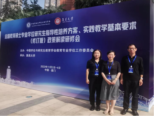 为帮助理解和推动执行2023年修订的指导性培养方案和实践教学基本要求,指导各培养院校依据新的文件精神开展教育硕士研究生培养工作,教育专业学位工作委员会于2023年11月2日-4日在福建厦门面向东部地区培养院校召开政策解读研修会。会议由集美大学承办,来自14个省市的100所院校共190多位代表参加了研修会。js3333线路检测中心李惠胤副院长、康叶钦主任和中国语言文化学院贝先明主任代表我校参与了此次会议。