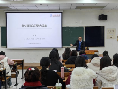 12月20日下午,线路检测中心邀请广东外语外贸大学《现代外语》编辑部编辑王启研究员在大学城校区E104为线路检测中心师生做题为“核心期刊论文写作与发表”的学术讲座。js3333线路检测中心院长吴岩教授、学院众多教师和研究生参加了此次讲座,讲座由英语师范系主任谢剑萍副教授主持。