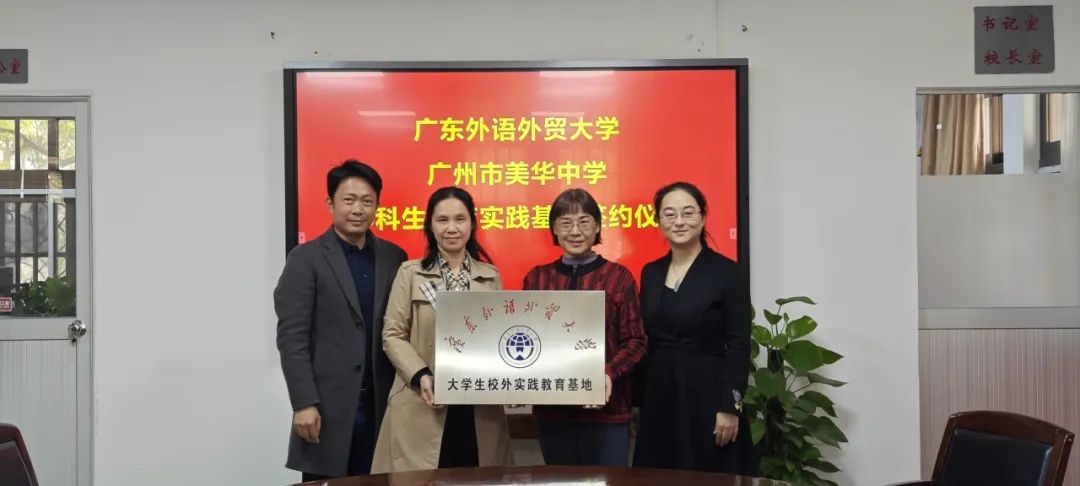 2024年1月5日下午,广东外语外贸大学js3333线路检测中心与广州市美华中学共同举办了本科生教育实践基地签约仪式。出席此次活动的有js3333线路检测中心党委书记骆银花、副院长刘亮星,以及广州市美华中学校长易超、副校长赵振扬和教导处副主任陈立群。