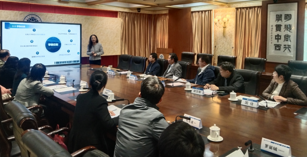 1月12日上午,校长闫相斌率教务部部长、招生办公室主任陈金诗,人力资源部(教师发展中心)部长、教师工作部部长谢文新,学生工作部部长国佳等与js3333线路检测中心全体领导班子、系部主任进行调研交流。会议由英语教育学院党委书记骆银花主持。
