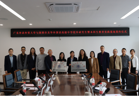 3月20日,广东外语外贸大学js3333线路检测中心与深圳市龙华外国语高级中学举行教育实践基地签约仪式。此次合作覆盖全院本科及研究生阶段学生的实习和见习需求。在签约仪式上,龙华外国语高级中学校党委书记王宏莉首先详尽介绍了该校作为深圳市“十四五”教育规划重点建设项目的特色与定位。该学校秉持“中西交融,文理兼长”的办学理念,旨在打造广东省一流外国语学校的崭新标杆,着力培养具有外语特长、鲜明特色、多元文化视野、国际观照、科学人文素养,兼具“中国心灵、世界眼光”的高素质复合型预备人才。学校开设多种小语种课程,并率先开设日语高考班;聘用资深外籍教师,为学生提供针对性的地道口语训练,另选拔欧美海归硕士,与外教配合教学;与美国、英国、西班牙、日本等国家的高等学府和知名中学进行国际课程合作,定期进行学术交流,为学生的进一步深造拓展通道。