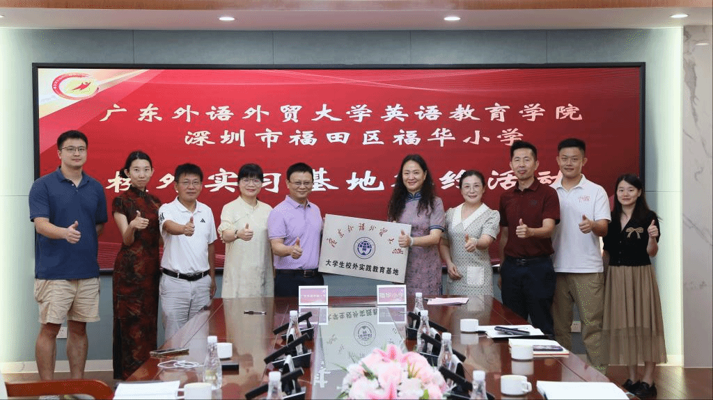随后,广东外语外贸大学与深圳市福田区福华小学签订了大学生校外实践基地协议,并举行实践基地授牌仪式。