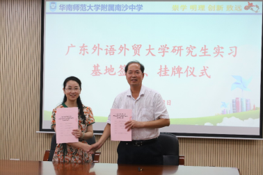 随后,线路检测中心与华南师范大学南沙附属中学签订校外实践基地协议并举行挂牌仪式,李惠胤副院长为林天伦校长颁发了导师聘书。