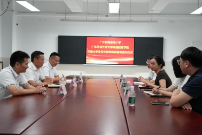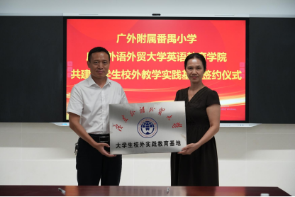 9月29日下午,线路检测中心与广东外语外贸大学附属番禺小学(以下简称“广外番禺附小”)签订校外实践教育基地协议,并举行授牌仪式。js3333线路检测中心党委书记骆银花、副书记罗诞铖、校教务部实践科科长李莹,辅导员刘博洋以及广东外语外贸大学附属番禺小学校长涂筱辉、副校长梁海文、办公室主任周振锋出席了此次会议。会议由梁海文主持。