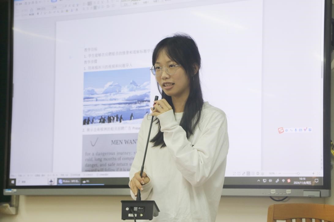 在实践活动中,师生共同参与,积极协作,组成了八个小组。各小组围绕阅读、写作、词汇、语法四大教学主题进行限时课堂活动设计。在短暂的半个小时准备时间里,各小组积极交流讨论,结合老师提出的建议完成课堂活动设计并通过说课或上课的方式进行展示。