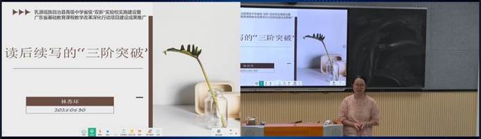 随后,韶关市教科院高中英语教研员王锦霞对课例展示进行了点评。她表示乳源高级中学课例展示的英语备课组在学情分析、内容设计、教学安排等方面做得很好,未来应重视AI教学模式,联合高校等多方举办教研活动探寻课程改革的方向,也可尽早将教学目标细化,稳步提升教学质量。