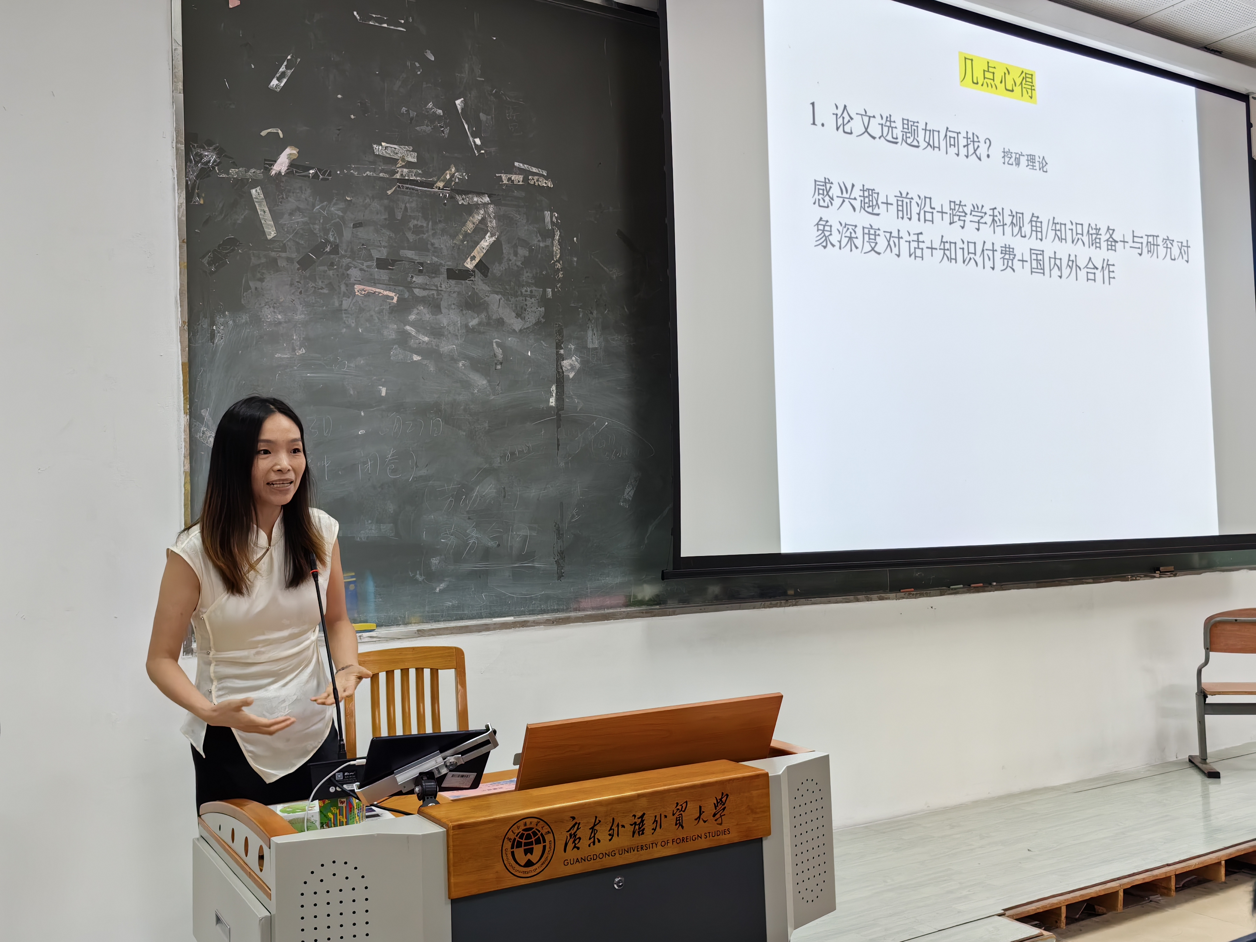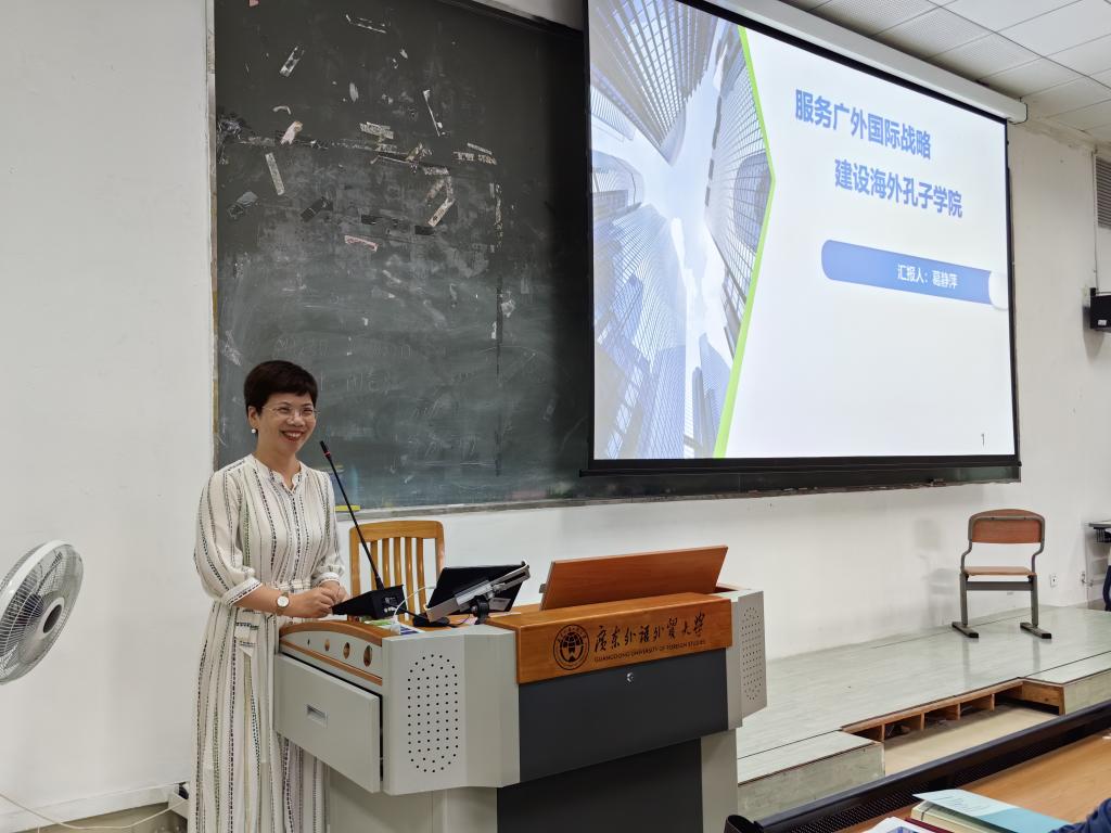 学科建设与发展是学院发展的核心驱动力。在学科建设与发展分享交流环节,三位教师带来了前沿、务实、精彩的专题分享:葛静萍副教授以《服务广外国际战略,建设海外孔子学院》为题,结合学院工作实际,分享了在服务学校国际化战略背景下,参与海外孔子学院建设的宝贵实践经验、面临的挑战以及对未来国际化办学路径的深入思考。