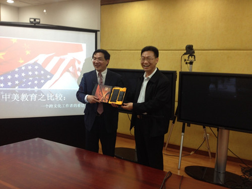 之后,教授以自身的亲身经历发表了留学时如何选择学校的看法,使师生收益良多。讲座的最后,线路检测中心领导与Thomas Peng教授交换纪念品,并感谢彭教授的来访。