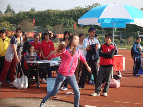 下午两点李雪盈再次出现在了跳高的赛场上,一次又一次完美的跨越,在每一次成功地跨过一定高度之后,她又尝试着向更高进发,最后她再次完美突破,在全校选手中最终排名第五。早上出现于200米赛场上的郑伟钧下午也出现在了男子跳远沙坑旁。在很多比赛中最能考验默契度和最能印证团结的力量之大的莫过于接力赛了,在女子4*100接力中,英教的选手们身穿背后印着英语教育的大字的蓝色运动服出现在跑道上,比赛开始信号打响后,接力棒在她们手中稳稳地传递着,全场她们始终为英教奋斗着,直至终点,女子接力最终排名为第八。整个下午英教的压轴也是全天中最考验耐力的一个项目,它也同样带动着英教观众的心-男子3000米。来自12级的林少灿,13级的黄国生参加了比赛,林少灿昨天已经参加了1500米并且排名第九,今天他又再次出现在3000米的起跑点上,观众表示佩服并为之加油鼓气,对黄国生观众也表示极力支持。在经过一圈又一圈,他们始终选择着坚持。3000米的坚持,其背后凸显的是无穷的力量。
