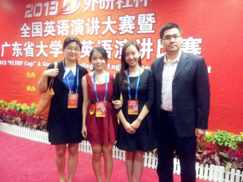 11月10日,2013年“外研社杯”全国英语演讲比赛暨广东省大学生英语演讲比赛在仲恺农业工程学院隆重举行。我校2011级英文学院阮博慧、2011级管理学院黎艳在陆璐老师和古煜奎老师的带领下,从57名来自全省50多所高校的优秀选手中脱颖而出,分别荣获特等奖和三等奖。
