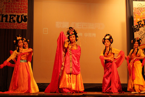 合唱之后,来自广州第二师范学院的李思隽同学带来了一首“彩云追月”,他一出场便赢得全场沸腾,一介男儿生,身着华装,画上了古典的妆容,配合着曼妙的身段,反串起花旦的角色,以独特的方式展示着戏曲的魅力。其后,英教Seed舞队带来了别具一格的舞蹈串烧,一曲“她说”极尽柔情与缠绵,POPPING则是散发动感与活力,群舞do something更是掀起全场高潮。