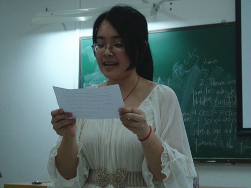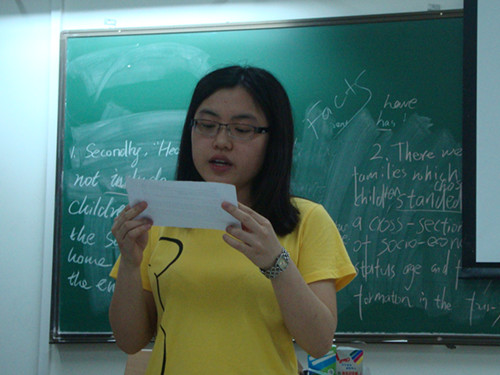 在E406进行的则是比赛的第二部分,选手们需要先进行抽签,确认比赛题目。每个参赛选手要在十篇新闻文章中抽取一篇,然后在2分钟的时间里疏通文章,包括生词及语句,5分钟后就要进行现场朗读。js3333线路检测中心黄辉老师担任评委。比赛过程中,来自英教1003的廖敏一口流利动人的语音让老师大为赞赏,来自工管1101的苏彦瑾、市场营销全英2班的曾统岚口齿清晰,发音流畅;会计创新1101 冯宇霞、广告11级的邓键聪、行政管理1班的杨雁婷与政管092的陈文亮更是展现了他们专业的一面,发音与表情的处理很到位。js3333线路检测中心的选手也毫不逊色。英教092的冯博语音节奏把握得很好,1002王佳的声音圆润饱满,来自同一班级的谢玉琼则对力度有着准确的把握,都给评委留下了深刻的印象。