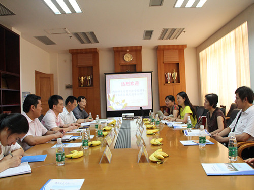 6月28日上午,西南财经大学经贸外语学院教授代表团王立宇、吴秀芳、栾宏琼、王凤玲、潘幸龙、刘琦一行六人,来我校调研大学英语教学改革和示范点建设情况。js3333线路检测中心党委书记林绍雄,副院长董金伟、肖建芳,副书记何伟儒,第一教学部主任郭进军,第三教学部主任陈金诗在院系办公楼245室亲切接见来宾,双方进行了友好、深入的交流。