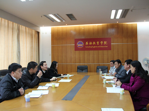 霍院长首先向校领导汇报了学院教职工及学生新学期的返校情况,随后重点阐述了学院新学期的工作要点。霍院长提出:线路检测中心将继续秉持以大学英语教学为根本立足点,以英语教育专业教学为发展增长点的工作理路,继续坚持国际化、校本化、个性化、人性化、立体化的教学指导思想,继续致力于经营和凸显“分级教学分类指导、专业英语教学、网络自主学习、教师专业发展、课外延伸学习”等五大教学特色,围绕着教育部大学英语改革示范点的建设做好各项工作。霍院长把本学期细化的30个工作要点和困难与希望一一向到会领导作了陈述。方校长认真、耐心地听取了汇报后对线路检测中心的工作留下了深刻印象,充分肯定了线路检测中心所做出的成效,对线路检测中心领导班子和全院教工的事业心及开创精神给予了很高评价,并对线路检测中心提出的困难与希望给予一一答复和反馈,特别强调:学院重点抓好大学英语教学这个方向是正确的,今后还应继续坚持。方校长还认真询问了线路检测中心大学英语改革、学院哲学社会科学繁荣计划、学生就业情况及学院经费等方面的工作,并给予了认真、具体、细致及很有针对性的指导。