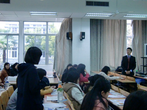 首先,霍院长代表学院对邹教授和袁博士表示衷心的欢迎。在其后的讲座中,邹教授以儿童语言的发展规律为基础,指出语言沟通的重要性,自然地引出言语障碍的概念。随后,袁博士深入浅出,为大家深入剖析言语障碍问题。同学们认真倾听,更有同学大胆提出自己在做家教兼职的过程中产生的疑问,袁博士的回答亲切而幽默,瞬间拉近了与同学的距离。 最后,袁博士提出融合教育这一新的教育理念和教育过程,同时介绍了教育语言学暨言语科学文学硕士的课程,鼓励同学们选择该课程到香港就读。