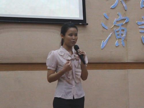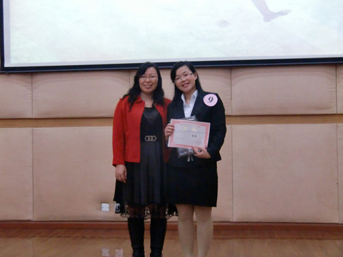 最终加冕一等奖的9号选手曾丹丹赛后表示,保持平常心帮了自己很大的忙。她把评委和观众当做是自己的朋友,不去想结果,只是享受这个分享的过程。当记者向曾丹丹同学“取经”时,她分享了自己平时练习英语的独特方法——自己跟自己练习口语,如上课时在心中把老师的英文翻译成中文,“自言自语也是个好办法”,她说道。曾丹丹谦虚地表示,自己的水平仍然和很多高手有很大差距,努力是必须的,同时也鼓励师弟师妹们好好珍惜大学生活,提升自我。
