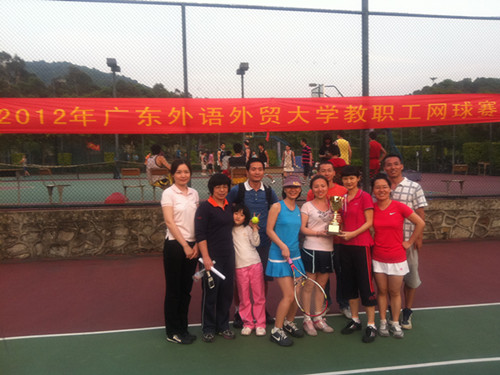 4月21日,艳阳高照,线路检测中心网球健儿在北校区举行的2012广外大教工网球比赛中一路高歌,经过一整天的顽强拼搏,喜获佳绩,以总分34分的总成绩名列全校第二(体育部总分第一)。宁大利、周敏女双组合荣获女子双打亚军(体育部选手夺得冠军)。