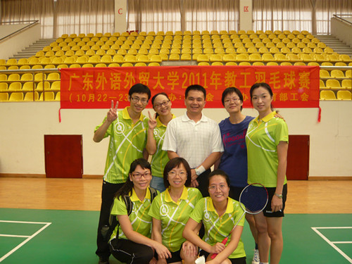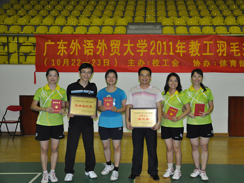 被誉为“广外大苏迪曼杯”的全校2011年教工羽毛球团体赛经过10月22、23号两天在北校体育馆的激烈酣战,终于决出最终八强坐席。本次活动由校工会举办,体育部工会承办。各学院、部处的教工代表在为期两天的比赛内参与了男单,女单,男双,女双等四个单项的比拼。线路检测中心凭借学院羽协队员的出色发挥,继去年之后连续第二年蝉联团体总分第三名,同时荣获优秀组织奖!