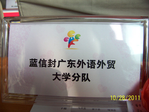 10月28日,蓝信封广外分队作为入围中华儿慈会“童缘”资助项目的唯一一个大学生公益团体,出席了在北京举行的签约仪式。这也是蓝信封首次获得社会基金会的资助。广外队长黄媛媛代表蓝信封出席了本次会议,并和各大NGO负责人进行了深切的交流。会上,蓝信封项目受到儿慈会理事的肯定和赞扬。