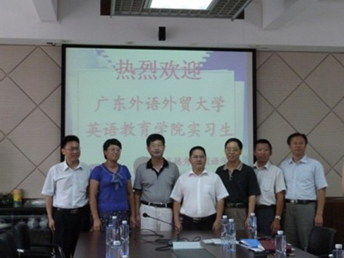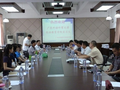 越秀外校的石远习校长、党总支书记杨建伟、副校长李洪奇、陈晓莲、严永铭以及教导处主任李志飞和英语科组长杨师民等10多位领导、老师在会议室接待了线路检测中心实习队伍,李洪奇副校长主持见面会。