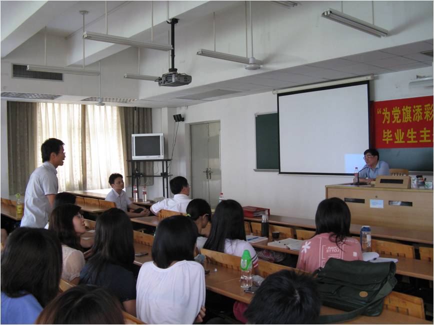 6月11号下午,由我校原党委书记、校长徐真华教授主讲,js3333线路检测中心主办的“为党旗添彩,为母校增光”毕业生主题教育活动在南校区教学楼E205举行。本次讲座由js3333线路检测中心党委书记袁长青主持,院党委副书记易宗勇、院办主任曾国华和06级毕业生及其他学生党员参加了此次活动。