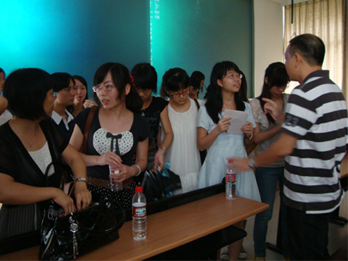 关于应聘前的准备工作,黎校长更是做了详细的指导。面试前要充分准备好,因为要面试的是教师岗位,所以要熟悉自己所要教的教材,准备好教案课件,同时也要事先多做试题,了解中高考的考试内容。针对面试时如何介绍自己的问题,他谈到面试要实际一点,不要太多套话,讲成绩,讲专长,而面试就是要让考官们知道你的成绩,专长。因此,面试时要重点说到自己获取奖学金的情况、计算机等级考试、参加的活动等能体现自己优势的地方,学校比较重视毕业生的学业成绩,这是由普通中学的性质决定的。