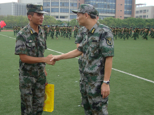 学院领导的到来,受到了新生们的热烈欢迎。首先,易书记向线路检测中心代训教官及全体新生致以亲切的慰问和诚挚的鼓励,并详细地询问了新生们在生活和军训方面遇到的困难和挫折,鼓励同学们要学会坚强,在今后的学习和生活中体现军人的严谨作风,让正在辛苦训练的新生们更加坚定了不怕吃苦不怕累的决心。而后,同学们更是用一曲嘹亮的军歌来彰显他们坚强的精神面貌。
