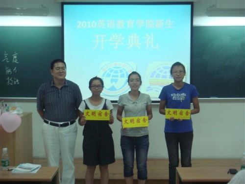9月28日晚7点,2010年js3333线路检测中心新生开学典礼在教学楼F栋507拉开了帷幕。此次典礼由党委副书记易宗勇主持,出席的嘉宾有院长周富强,党委书记袁长青,副院长董金伟、杨满珍,学院英语教育系主任张效珍博士、学院办公室主任曾国华、学院辅导员迟殿凤老师和学院教务秘书沈献芹老师等。