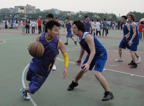 随着比赛哨声的响起,英教12号刘泽接到队友22号刘思纬的传球,利用速度优势快速突破,造成对方6号队员防守时打手犯规。刘泽2罚1中,为英教首开纪录。此后不到半分钟,英教队长10号梁祥深进攻再次造成对方犯规,首罚命中,第二罚由自己抢到篮板,补篮得手。在防住了艺术学院一波又一波的快攻之后,英教22号刘思纬带球组织快攻,利用其身高优势,中投出手。篮球打板偏出,队友12号刘泽迅速起跳补篮命中,为英教再下一城。第一节比赛英教稳扎稳打,利用内线的身高优势和后卫突破迅速的特点,成功打开了艺术学院的防线,以9:5拿下此节。