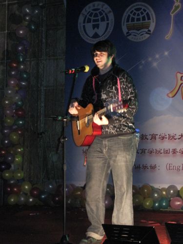 中外游人的倾情表演为开幕式增添了气氛。外国友人Jonny自弹自唱,为大家献上旋律优美的英文歌《It’s up to you》以及他的原创歌曲,充满异国风情的表演不仅让在场的同学们眼前一亮,而且感染了在场的外国友人,赢得一片热烈的掌声。绿洲音乐协会的演唱、即兴电影配音、英语绕口令、学生代表演讲等几个环节当中,同学们灵活的演绎以及诙谐幽默的对白博得了阵阵掌声,展现了广外大的英语风采。