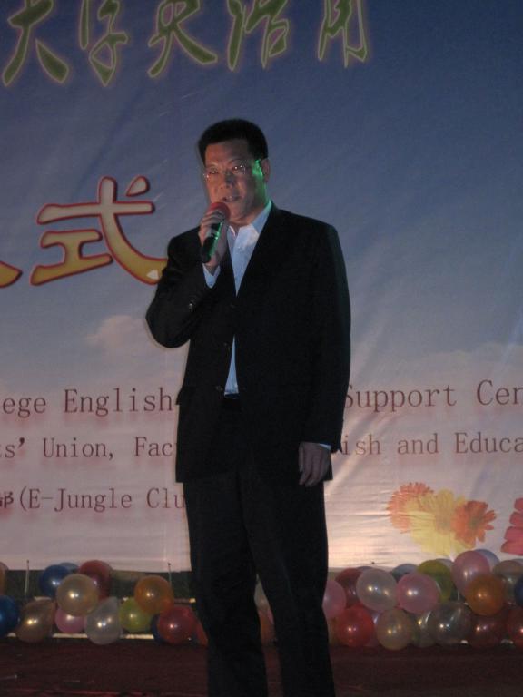 仲伟和校长的精彩演讲为开幕式拉开了序幕。在讲话中,他对英语角的启动和扩大表示了殷切的期望。他与同学们分享了他在外求学的经历,并表示参加英语角使他获益匪浅,正是因为英语角,他才练出了一口流利的英语,并借此鼓励同学们抓住机会,积极参加英语角。他希望广外大英语角能够变成一个充满爱的地方,爱英语爱生活的地方,同时也能够培养更多的杰出人才,用英语成就非凡的事业。
