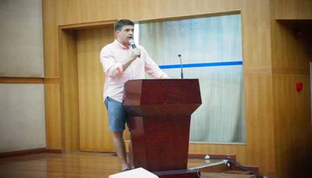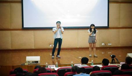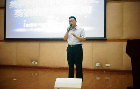 大赛在董金伟院长的热情洋溢的致辞中拉开帷幕。同学们热情高涨,现场的气氛被董院长的一段英文致词引到高潮。“...I think this kind of activity can benefit all of us. Firstly, Iwant to express my heartfelt thanks to all of the teachers of this course...andI wish a great success to today’s final contest...”董金伟院长引经据典表示了对此次英语新闻视频大赛的希冀,以及对各位参赛选手的肯定和祝贺。