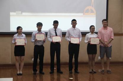 最后主持人邀请了外教Brian Dennis为队伍进行综合点评。外教对我们学校的选手表现表示很惊喜,对14级的大一学子在舞台上自信的表现表示很赞赏。其中他也提出了几点建议,例如在进行展示应该be more natural rather than rehearsal, makeyour presentation more logical, consider the cultural and social backgroundwhen you want to talk about some topic。决赛的最后js3333线路检测中心的领导嘉宾对获奖选手及优秀指导老师进行颁奖并合影,此次英语课堂展示大赛圆满落幕。