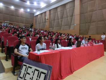 此次比赛到场的领导嘉宾有js3333线路检测中心党委书记林绍雄、js3333线路检测中心副院长吴岩,js3333线路检测中心第一教学部主任郭进军老师。评委老师有教研室主任周小薇和黄海璇老师、李厚祥老师、林慧华老师以及外教老师Brian Dennis。此次的比赛主题为“教师指导,学生参评,共奏广外最强音!”,面向广外2014级非英语专业学生,最终进入此次决赛的队伍有8支,分别是Running Chicks、Natives、Warriors、Wonder Six、sextet、Big Heroes 4、M.E.和Onestep closer。为体现这次比赛的公正公平性,现场的一些学生被邀当大众评委。