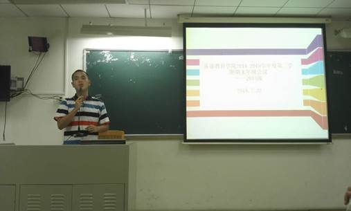 林泽龙作为学院今年新入职的辅导员,向现场的同学作了自我介绍,并分享作为一个刚刚从学校走向工作的新人感悟。据了解,学院辅导员的分工也将有所调整,迟殿凤将主要负责12、13级学生和党建工作,而林泽龙将负责14、15级学生和团学工作。