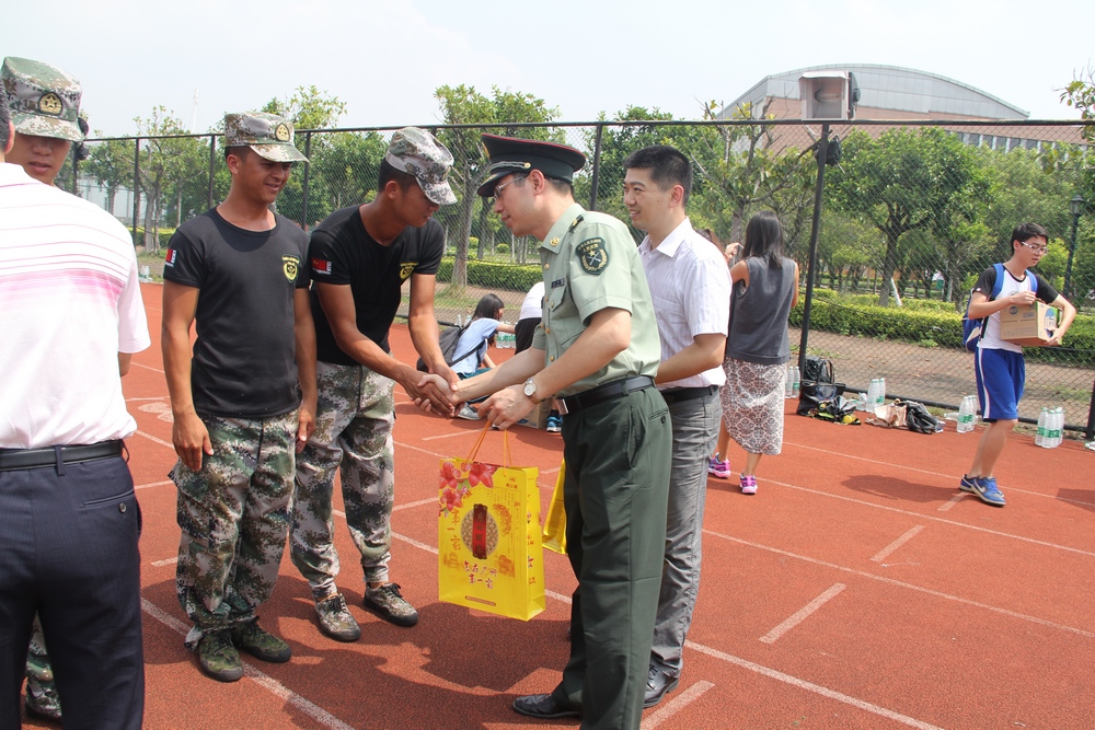 临近中秋佳节,林绍雄、熊涛和徐昶斌代表js3333线路检测中心向四位教官发放月饼礼盒以示感谢并予以节日慰问,各班班导也给每位同学派发了功能性饮料,为新生们带来了一丝清凉。