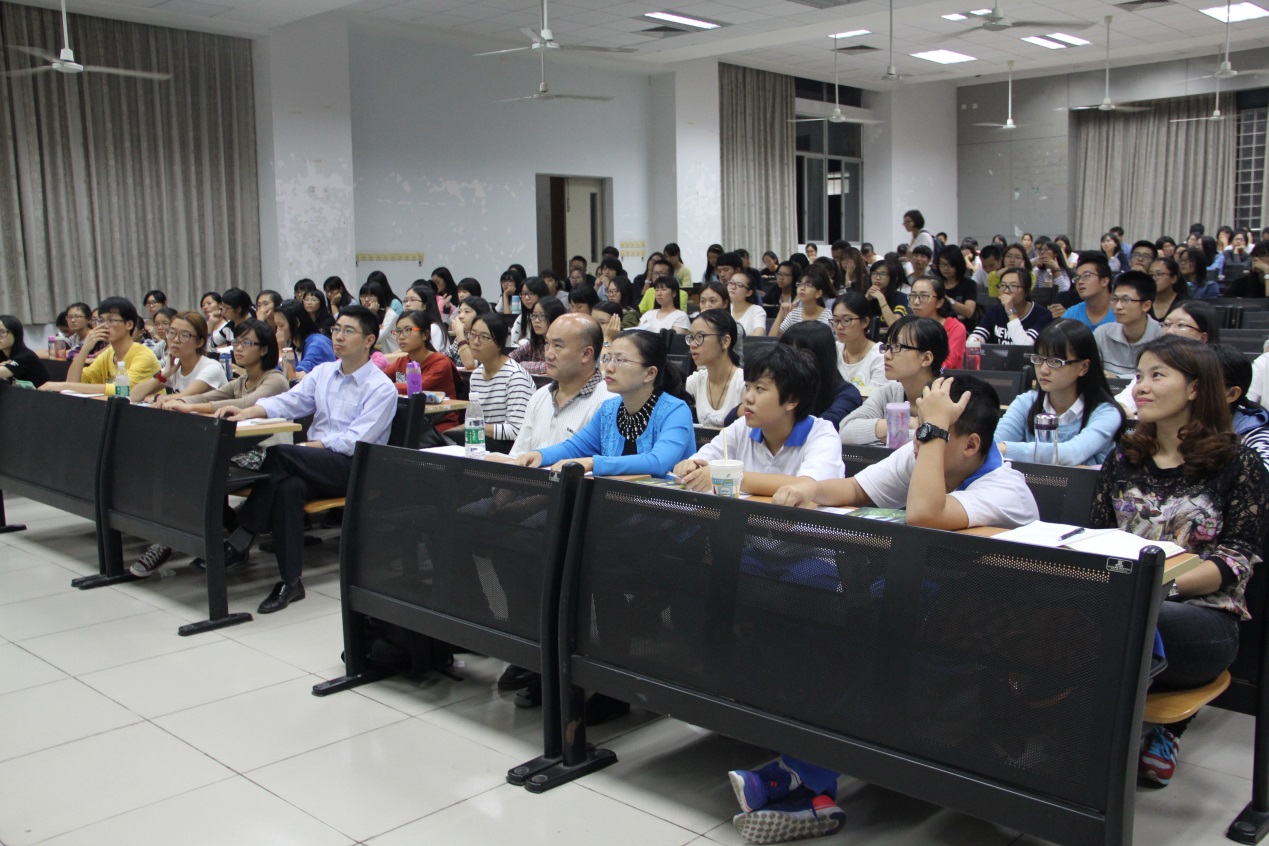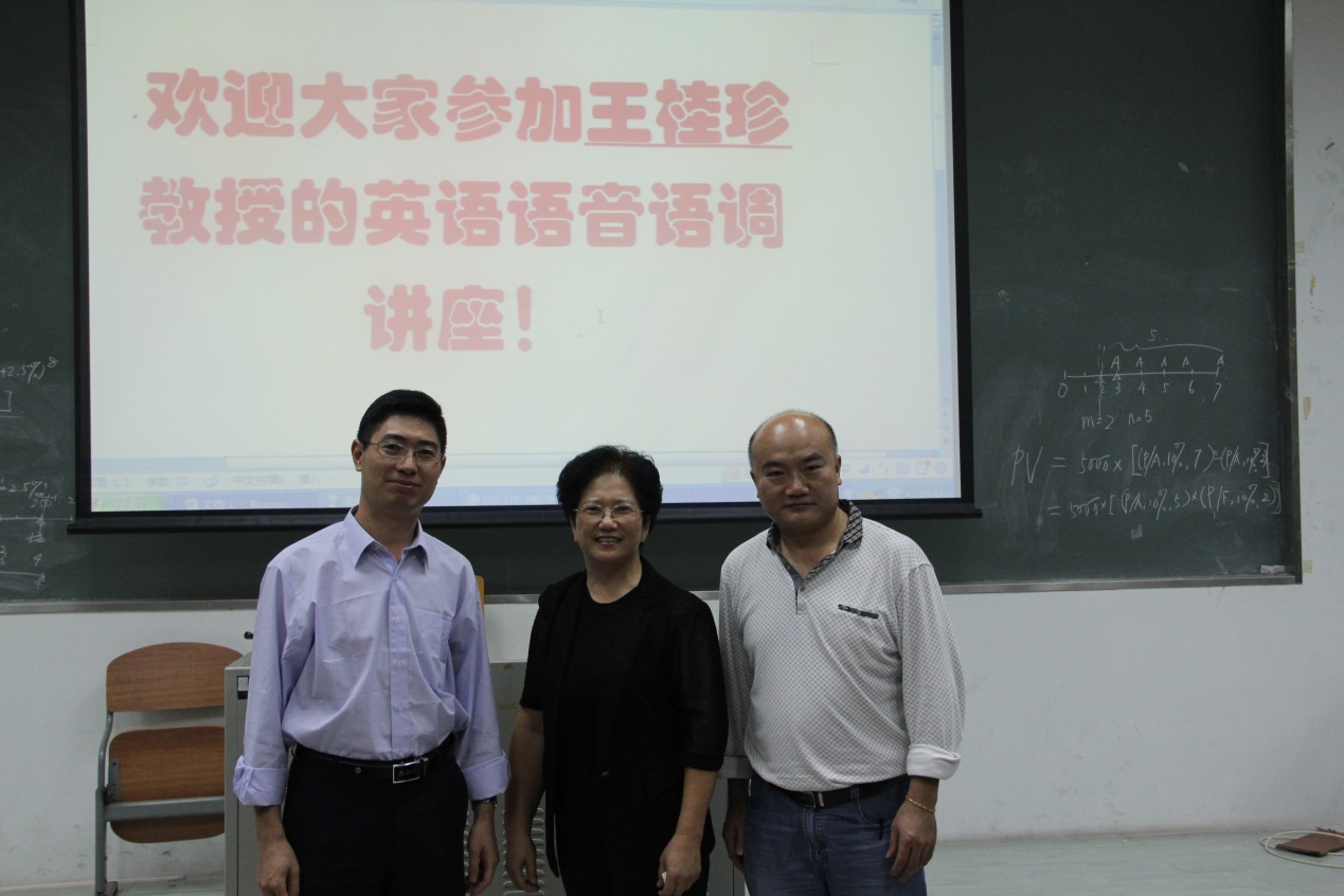 2015年10月13日晚,国内著名英语语音语调专家王桂珍教授,做客教学楼G207,面向全体js3333线路检测中心2015级新生,带来了一场 以“学习英语语音,提高听说能力”为主题的讲座。js3333线路检测中心党委副书记徐昶斌、系主任谢剑萍、教师何德生、辅导员林泽龙、js3333线路检测中心全体2015级新生以及其他语音语调学习爱好者参加了本次讲座。