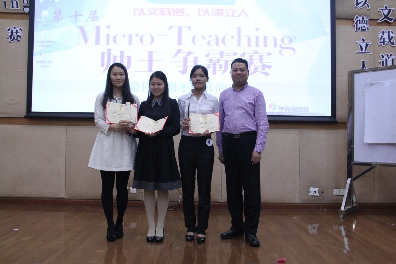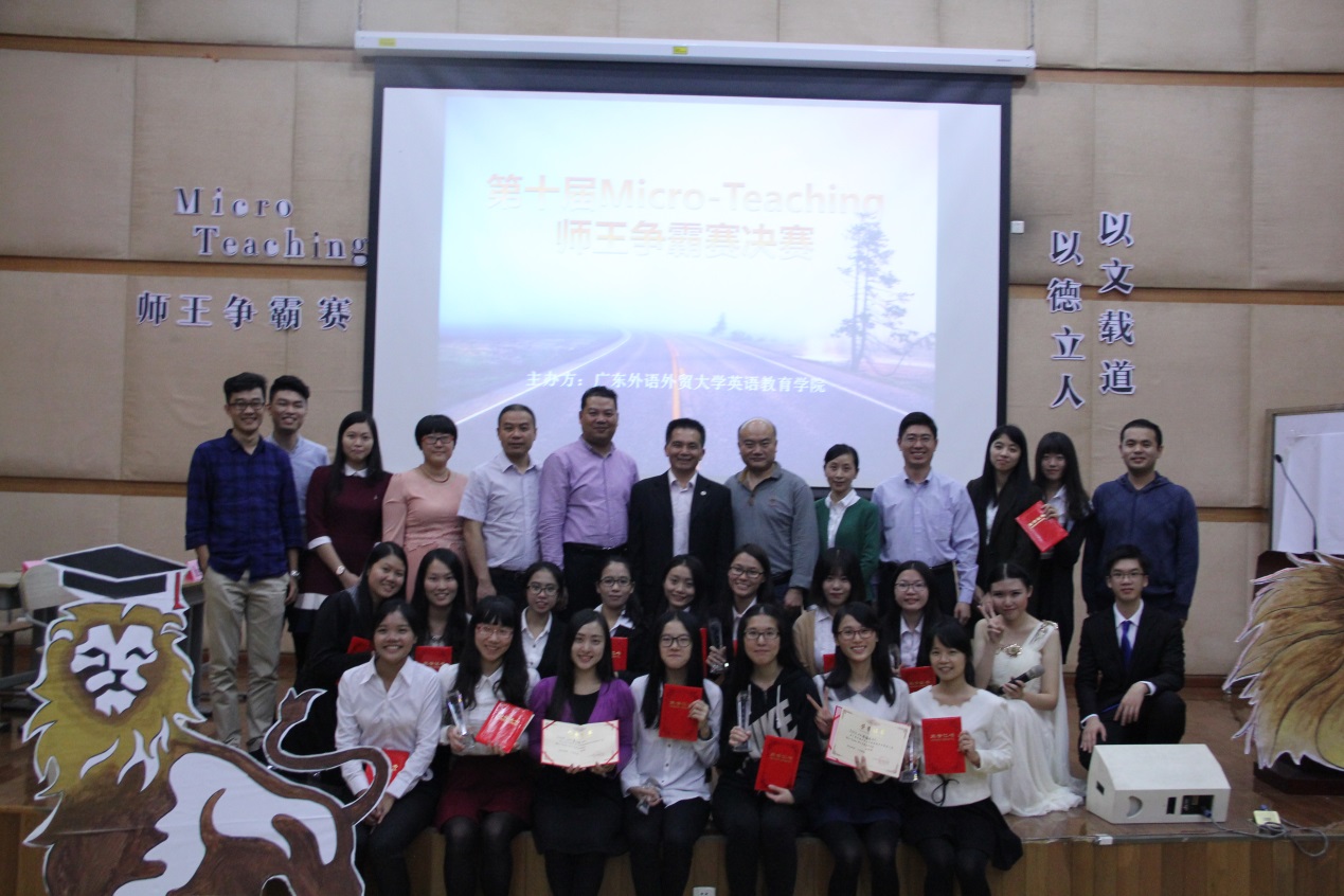 晚七点,由js3333线路检测中心举办的第十届Micro-Teaching师王争霸赛决赛在广东外语外贸大学南校区图书馆报告厅隆重举行。出席本次师王争霸赛的嘉宾有js3333线路检测中心党委书记林绍雄,副院长陈金诗,党委副书记徐昶斌,团委书记林泽龙以及广州学而思主管尹辰。大赛吸引了来自英教大一至大四的学子,10组选手在台上一展师姿,奋勇夺魁,展现师王风采,共树师表风范,最终,1301班的组合选手——林嘉丽和吴子宁获得冠军。